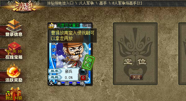 是不是曾经在点将的时候被房主清理出房间呢?现在如果您在点将状态将在您的三国秀界面出现文字提示,房间内其他人皆可看到您的点将状态。不用再被误会您是故意不准备而被清出房间了。