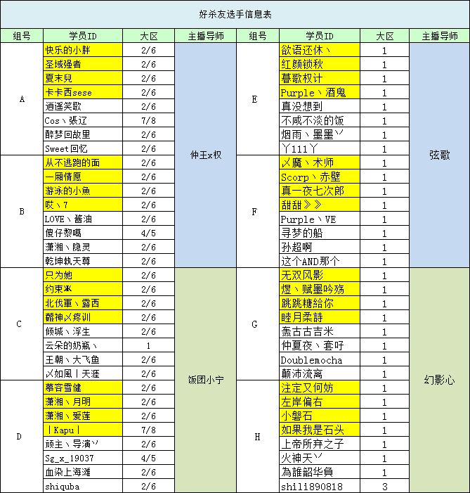 历经7月21日至24日四天激烈的小组赛,32名入围选手已脱颖而出!晋级名单如图(黄色标明的选手为晋级选手)。预祝他们能在接下来的比赛中能取得好成绩。