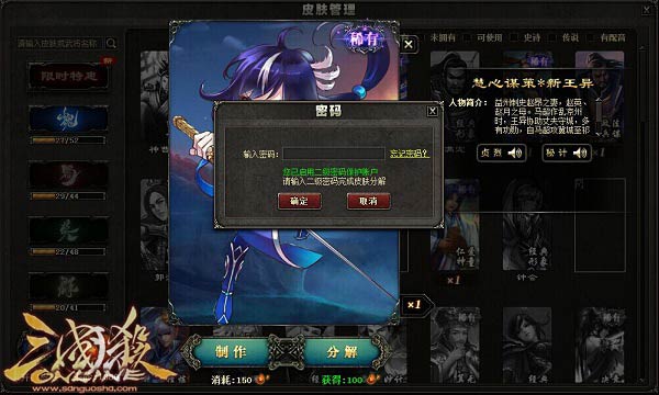 分解皮肤将需验证二级密码