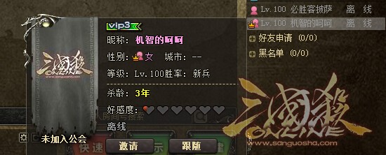 玩家好友好感度展示