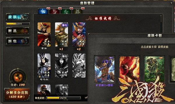 武将、三国秀收藏册、皮肤管理按钮分开展示,方便您的使用