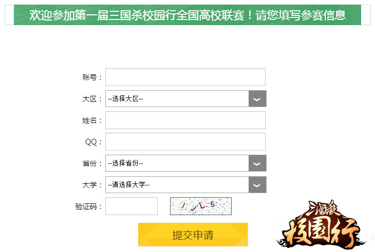 这时你也可能会因为没看到自己的学校和社团,而变得有点失落……不过不用灰心,点击“社团申请”,提交学校社团信息,校园行将在第一时间和你联系。加入三国杀校园行和全国各地的精英社团一起嗨,就是这么简单!