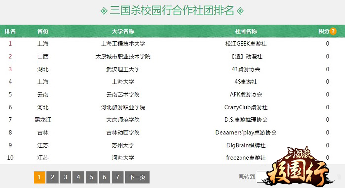当然你还可以在“社团排名”里查看你们学校的社团排名和积分情况,寻找自己所在的学校,琢磨登上榜首赢得校园行大奖的方法……