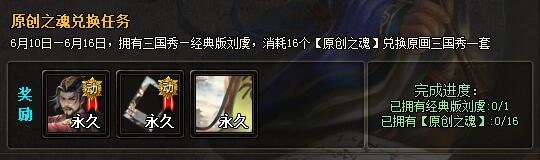 原创之魂(二):6月10日—6月16日,已开通全部将1、将2、将3武将包的玩家可获得3个【原创之魂】