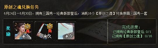 原创之魂(七):6月24日—6月30日,拥有武将-郭皇后即可获得即可获得1个【原创之魂】