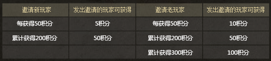 积分任务:被邀请玩家完成相应任务后可获得积分奖励,活动时间内成功邀请的玩家可以领取30天的相关任务奖励