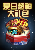夏日超神大礼包:购买后可获得会员卡*1年、史诗将印宝箱*1、武将抵价券(2000-1500)、豪华皮肤包*1,活动限购价:13999元宝(每人每日限购1个)