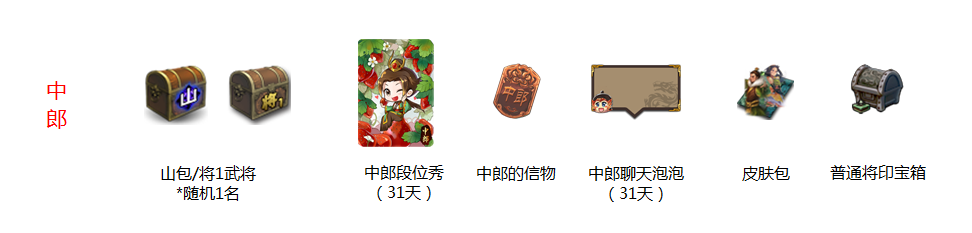 第二阶段:精英赛积分达到2301分以上玩家,可在赛季结束后领取豪华皮肤包*1、大将军印*1、三国秀锦囊*30