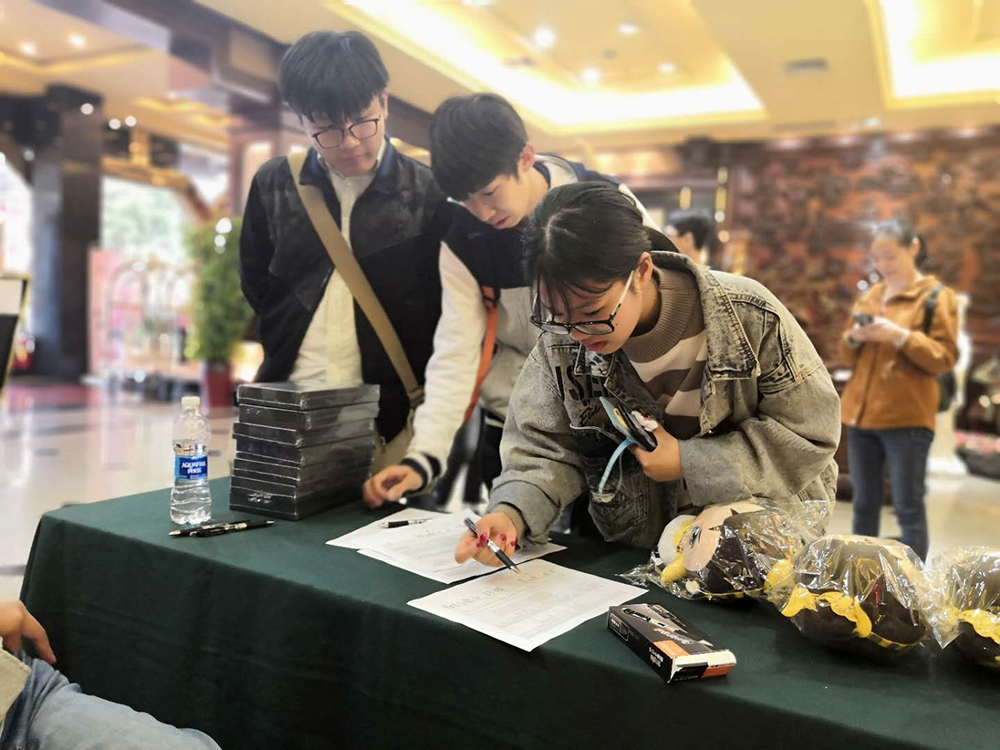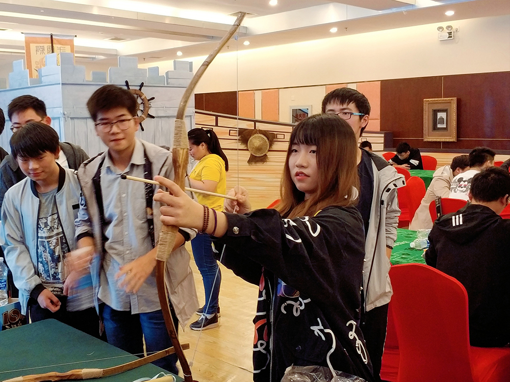 这次高校联赛武汉站现场,游卡桌游特别打造了一个三国杀大船,满满东吴风的大船上还原赤壁之战的场景,大船中央就是本次武汉站比赛的面杀区域,置身其中围桌而杀,仿佛梦回三国。除了面杀比赛区域外,游卡桌游还设置了草船借箭、华容道放曹、合影留念、打卡互动等活动,让现场玩家充分体验了一把赤壁之战的盛况!参与其中还可获得代币换取礼品,现场玩家纷纷投身其中,不亦乐乎。
