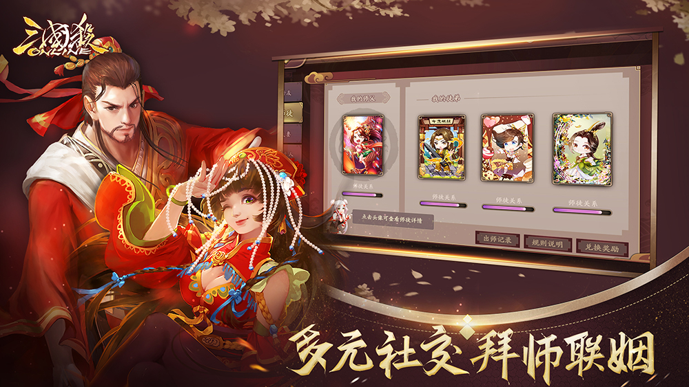除多种游戏玩法外,三国杀Online的社交更多元,交互更丰富!拜师收徒,夫妻联姻,公会争霸,好友邀请——满足你所有社交需求,遇到更多志同道合的朋友!