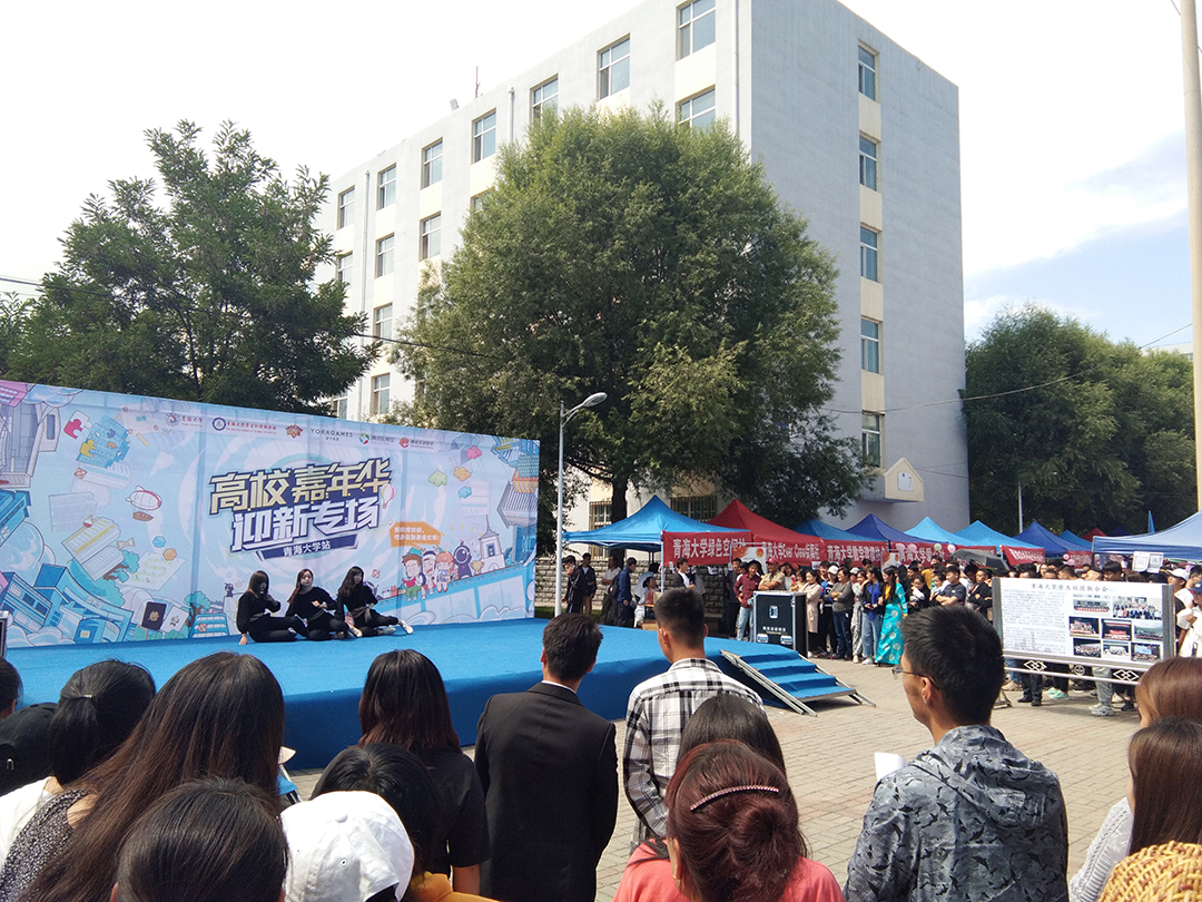 嘉年华活动现场的节目表演一开始,舞台区就被同学们围得水泄不通。