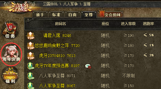12周年倾情回馈,登录游戏即可参与周年许愿。共计100份三国杀围巾、10份三国杀键鼠套装、1份三国杀x傲风联名电竞椅,开奖日由系统在所有许愿的玩家中随机抽选锦鲤获奖。