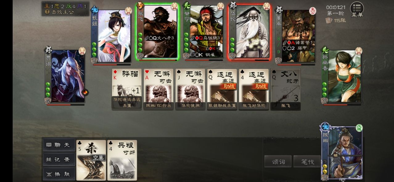 · 随机应变减少一张,剩余一张,红桃4的换成五谷丰登