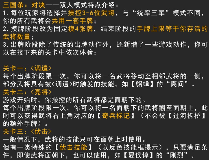 玩家将只用一副手牌,同时操控多个武将,借助新的游戏动作,享受更丰富的策略体验。