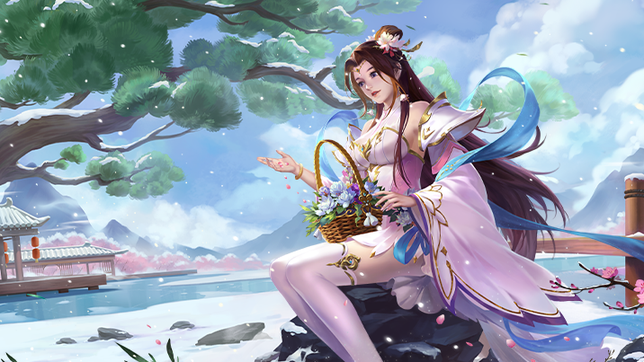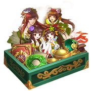 三国秀锦囊*1,玉颜双娇宝箱*1,金枝清雨宝箱*1,祈福灯*1,撒雪白晶(动态背景)