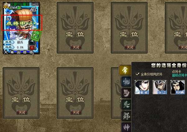 是不是曾经在点将的时候被房主清理出房间呢?现在如果您在点将状态将在您的三国秀界面出现文字提示,房间内其他人皆可看到您的点将状态。不用再被误会您是故意不准备而被清出房间了。
