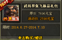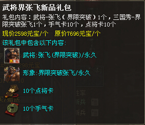 礼包名称:武将界*张飞新品礼包