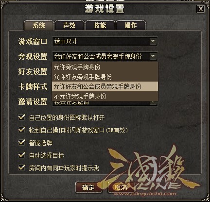 增加允许好友和公会成员旁观手牌身份