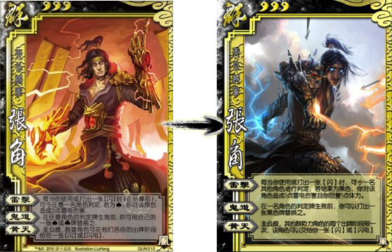 从2点必黑桃判定的爆发伤害化为只需判黑的1点输出1点自疗。在判定上大幅放松限制且能回复血量(如同自带回合外【青囊】)提高张角在身份局内特别是做主公时的生存能力,配合己方队友的【黄天】等配合,从此抛却“妙脆角”的外号