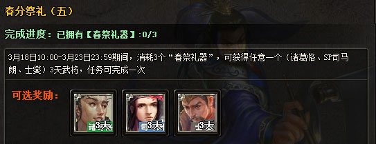 任务条件:使用左慈进行春祭,并消耗1个“春祭礼器”,可完成一次
