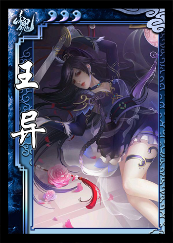 王异是益州刺史赵昂的妻子,为人节烈不屈,为时人所称赞。曾协助丈夫抵抗马超,并助其制定奇计九条。在三国杀中,王异是一个集辅助和防御于一身的卖血流武将。“贞烈”能够通过卖血来保护自己的关键牌,也能使自己免受【杀】的伤害来防止敌人通过【杀】相关的技能来获得更多收益。“秘计”在体力值越低时越能提供额外的摸牌,与“贞烈”的主动卖血有紧密的配合。