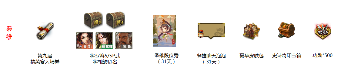 | 进击的排位(二) | 完成1局统率三军排位赛 | 统率三军排位专属武将试用宝箱 |