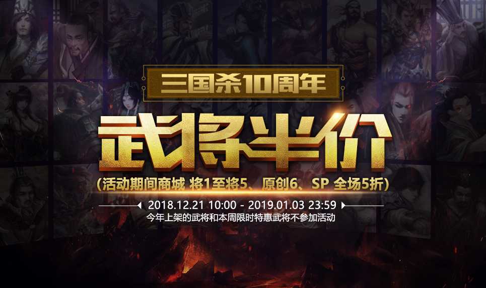 活动期间:商城武将 SP系列,将1,将2,将3,将4,将5,原创6 武将进5折优惠。您可以在商城的限时特惠区选购哟!!!
