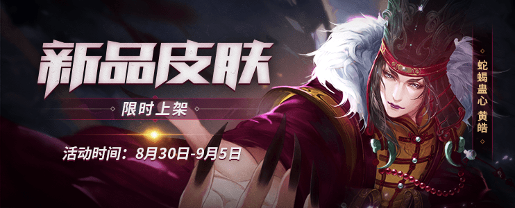 8月30日10点-9月5日24点,拥有皮肤 【蛇蝎蛊心*黄皓】完成任务可获得【水晶碎片】1个与皮肤秀【蛇蝎蛊心】