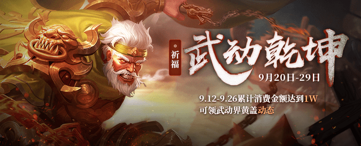 备注:武动乾坤*界黄盖动态皮肤,带有击杀特效,只可在9月12日10点-9月26日24点通过累计消费100w元宝获得: