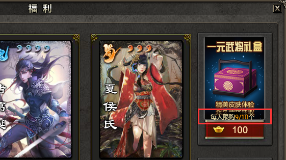 3、一元武将界面优化,增加礼包剩余可购买次数显示。