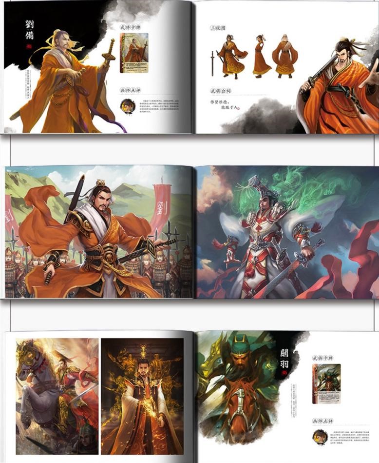 设定集中还首次公开了80多位武将的三视图,以求多方位展现武将特点,用色大胆,构图精妙,汉末风华、蜀汉忠义、魏晋雄风、东吴才俊的鲜活形象都跃然纸上。