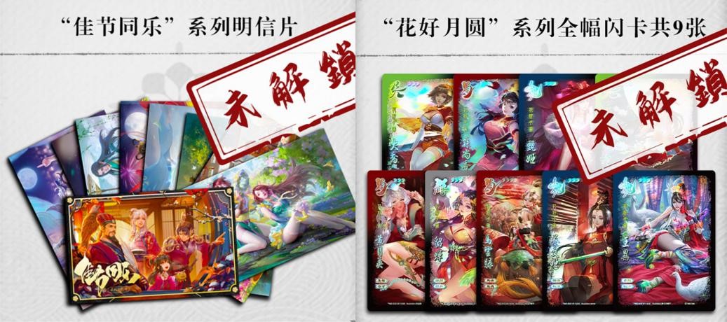 既是盛宴,怎能没有豪礼相送?《三国杀原画设定集》将登陆【新物集】平台进行独家预售,预售解锁礼包包括了为线上玩家准备的游戏道具——三国杀OL专属动态三国秀、豪华皮肤包和祈福灯以及为收藏玩家准备的全套花好月圆全幅闪卡等重磅福利,达成目标后即免费相赠,保证让所有三国杀玩家都能得其所好!