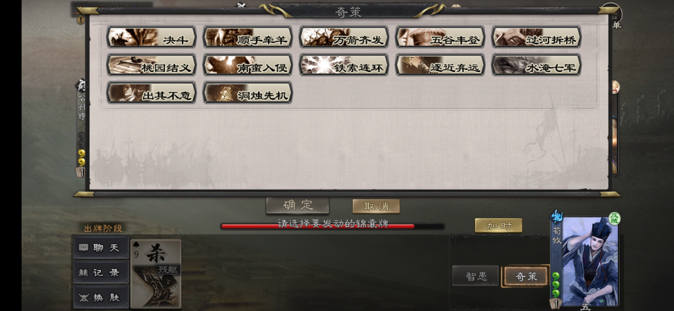 · 水淹七军减少一张,剩余两张,黑桃J的换成顺手牵羊