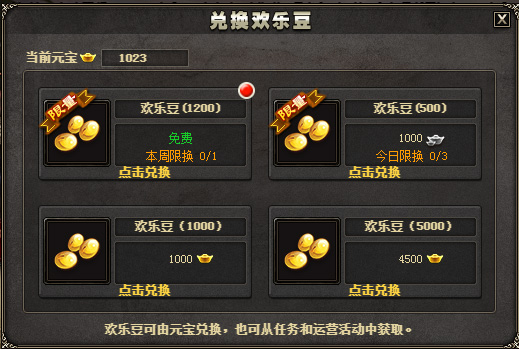 | 1000 | 银两*200,欢乐豆*300 |