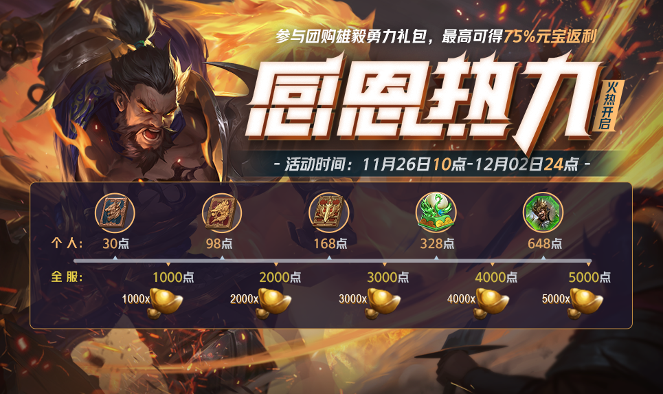 11.26-12.02 充值热力 全服助力团购界许褚传说 虚拟天团界孙尚香上线